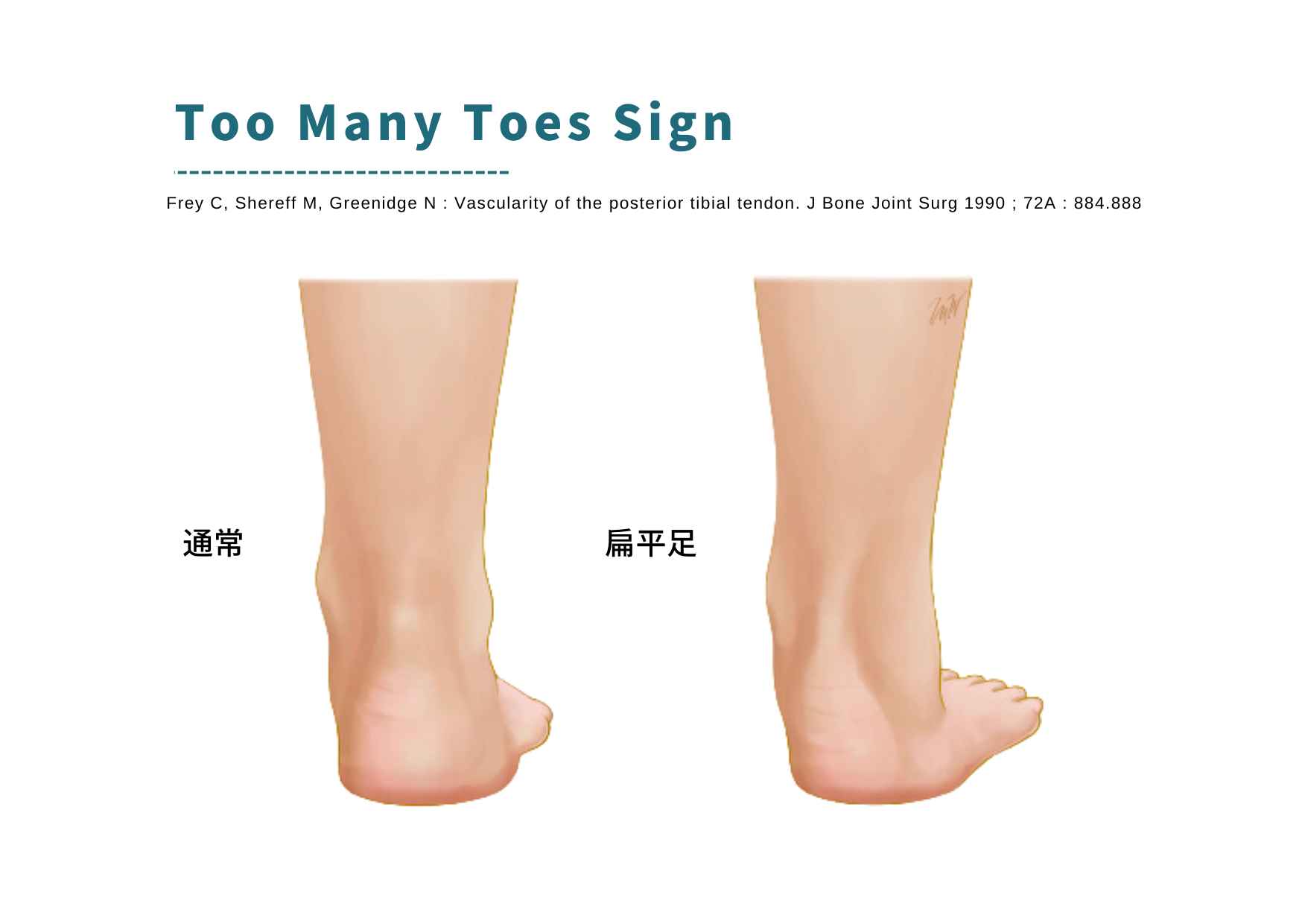 ②真後ろから見て足の指がたくさん見えていたら、扁平足の可能性を疑う